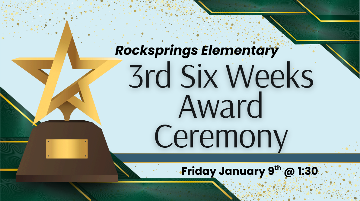 Please join us this Friday January 9th @ 1:30pm in the Auditorium to recognize our Elementary Students for the 3rd six weeks award ceremony! If you have any questions or concerns please reach out to Principal Cardenas or myself.